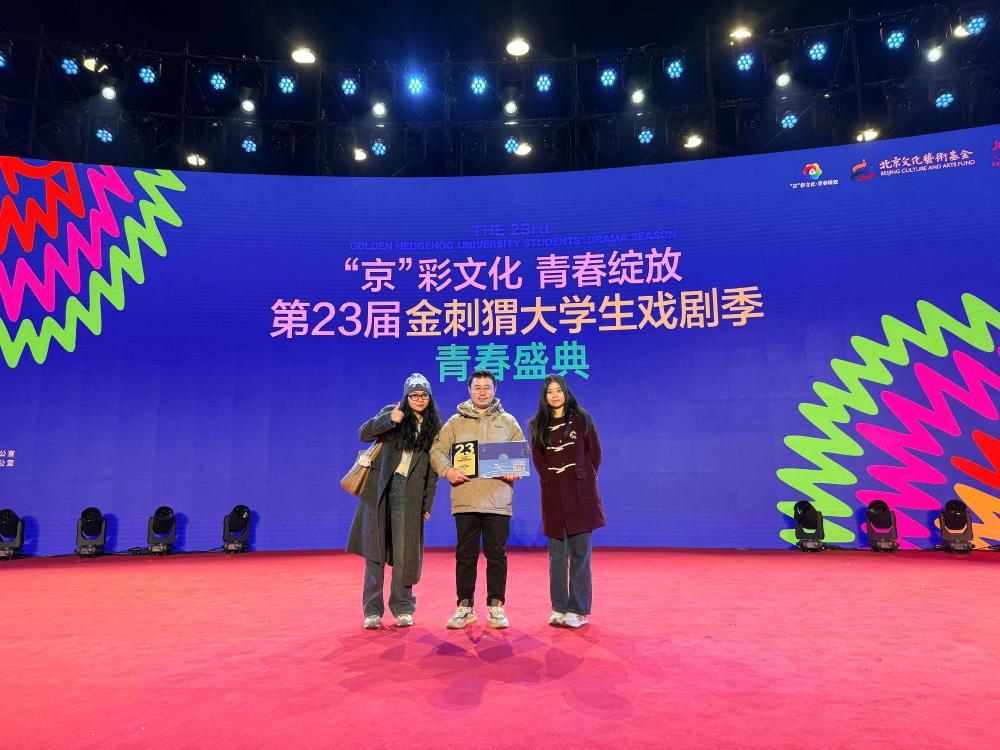 11月22日,“‘京’彩文化 青春绽放”第23届金刺猬大学生戏剧季青春盛典在北京郎园Station准点剧场举行。作为历经二十余载的青年文化IP,金刺猬大学生戏剧季已成为一个组织完善、理念认同度高、架构成熟的校园戏剧文化品牌,成为当代大学生戏剧才华的展示平台。在本届戏剧季中,河北传媒学院戏剧影视文学专业第二课堂“芦苇话剧”报送的原创作品《船长,船长!》在IDEA单元荣获“孵化创意”奖。IDEA单元为本届新增奖项,旨在鼓励戏剧创意与概念孵化,为青年创作者提供展示平台和孵化支持。