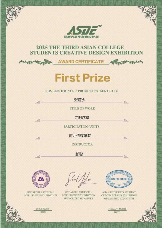 近日,第三届亚洲大学生创意设计展结果公布,河北传媒学院美术与设计学院视觉传达设计专业学生表现突出,在586所海内外高校、 7844余件参赛作品中脱颖而出,共斩获一等奖3项、二等奖5项、三等奖8项、优秀奖9项、优秀指导教师奖4项。