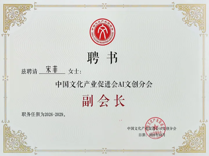 我校宋菲教授受聘中国文化产业促进会AI文创分会副会长