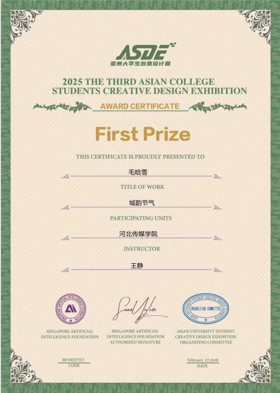 我校始终坚持以赛促教、以赛促学的人才培养理念,积极搭建实践育人平台,鼓励学生参与高水平学科竞赛,不断强化创新思维与实践能力培养。此次获奖是我校视觉传达设计专业教学成果的又一次集中体现,学校将继续深化实践教学与创新能力培养,持续推动专业建设与人才培养质量再上新台阶。
