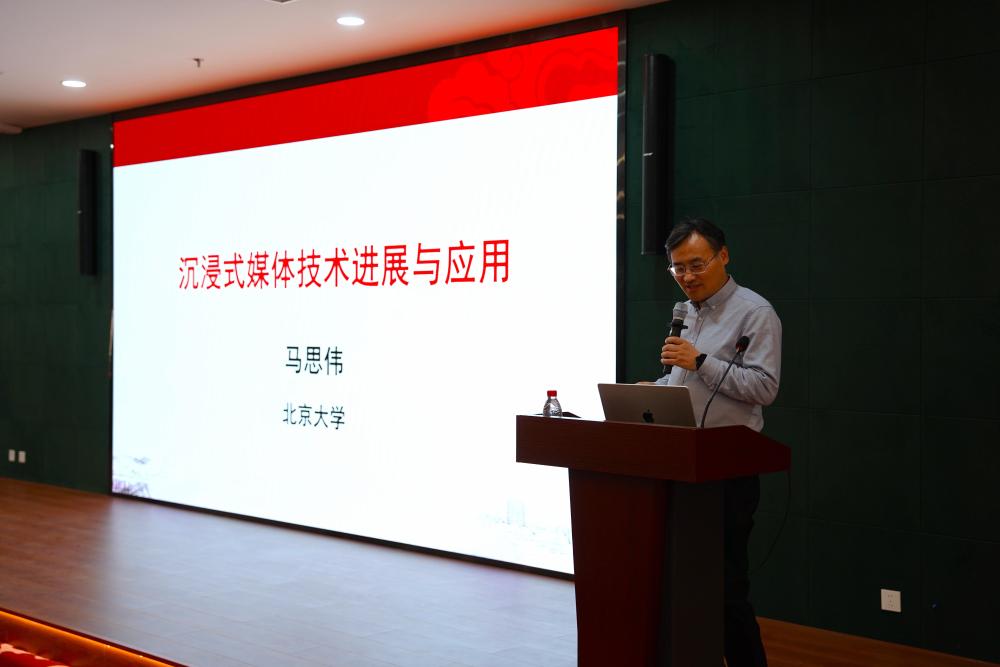 马思伟教授作了题为《沉浸式媒体技术进展与应用》的专题学术报告。文化产业管理学院、表演艺术学院、人工智能学院、影视艺术学院、数字艺术与动画学院及美术与设计学院等教师代表参加了本次讲座。讲座中,马思伟教授首先详细介绍了视频与视觉技术国家工程研究中心的发展概况,系统阐释了超高清技术如何引领媒体制作、传输、呈现等全链条的技术革新。他指出,当前超高清产业发展仍面临标准不统一、内容供给不足、终端适配复杂等关键挑战。随后,马思伟结合具体案例,深入剖析了超高清视频在采集、编码、传输、渲染等环节的全链条技术创新路径及其在文化、教育、文旅、演艺等领域的实际应用成效。马教授强调,技术融合创新是驱动产业高质量发展的核心引擎。随着“计算+AI”能力的持续突破,媒体技术正加速向智能化、沉浸化方向演进。沉浸式媒体技术不仅革新了内容生产与消费模式,也为文化创意产业开辟了广阔的发展空间,同时对跨学科人才、技术集成能力和生态协同提出了更高要求。