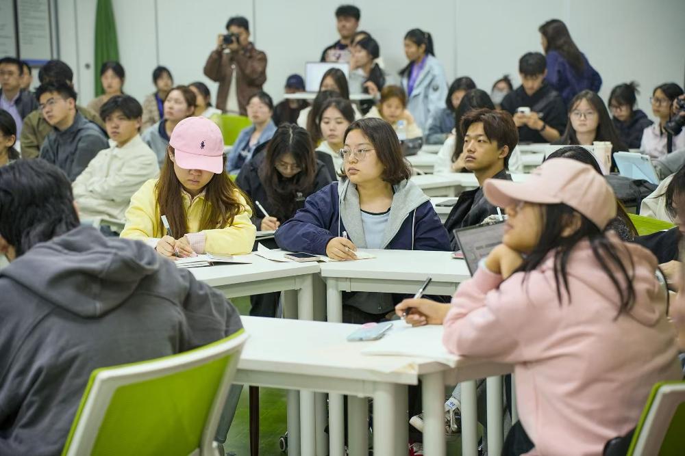 孙老师对2026年“挑战杯”大学生创业计划竞赛的整体概况、评审动态及最新评分标准进行了全面而深入的解读。他特别指出,近年来赛事评审更加注重项目的创新性、实践价值与社会效益,参赛团队需在选题立意、落地可行性和成果展示等方面下足功夫。同时,围绕“高分项目如何打造”这一核心问题,系统拆解了项目计划书撰写、路演逻辑构建、答辩技巧提升等关键环节,并结合多个真实获奖案例,逐一剖析了成功项目的共性特点与可复用的实战经验,为同学们梳理出清晰可行的备赛路径。整场讲座内容充实,学习氛围浓厚,师生们全程专注听讲,认真记录要点。